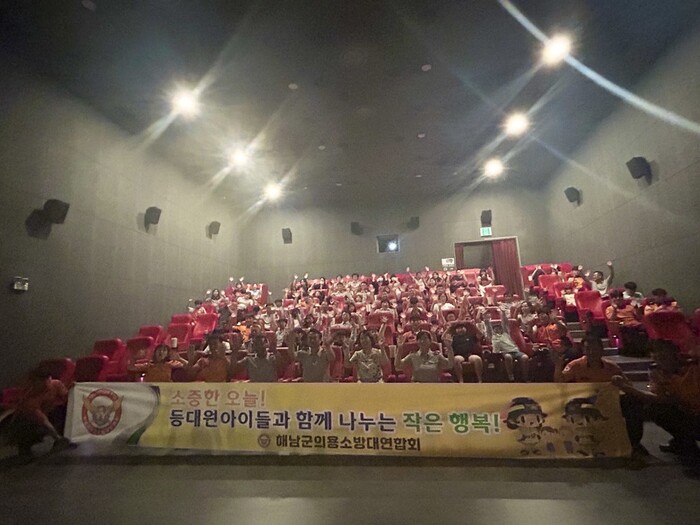 | ▲ 해남군의용소방대연합회, 해남읍 소재 사회복지시설 원아 대상 영화관람 일일 부모 역할 봉사활동 / 해남소방서 제공 |