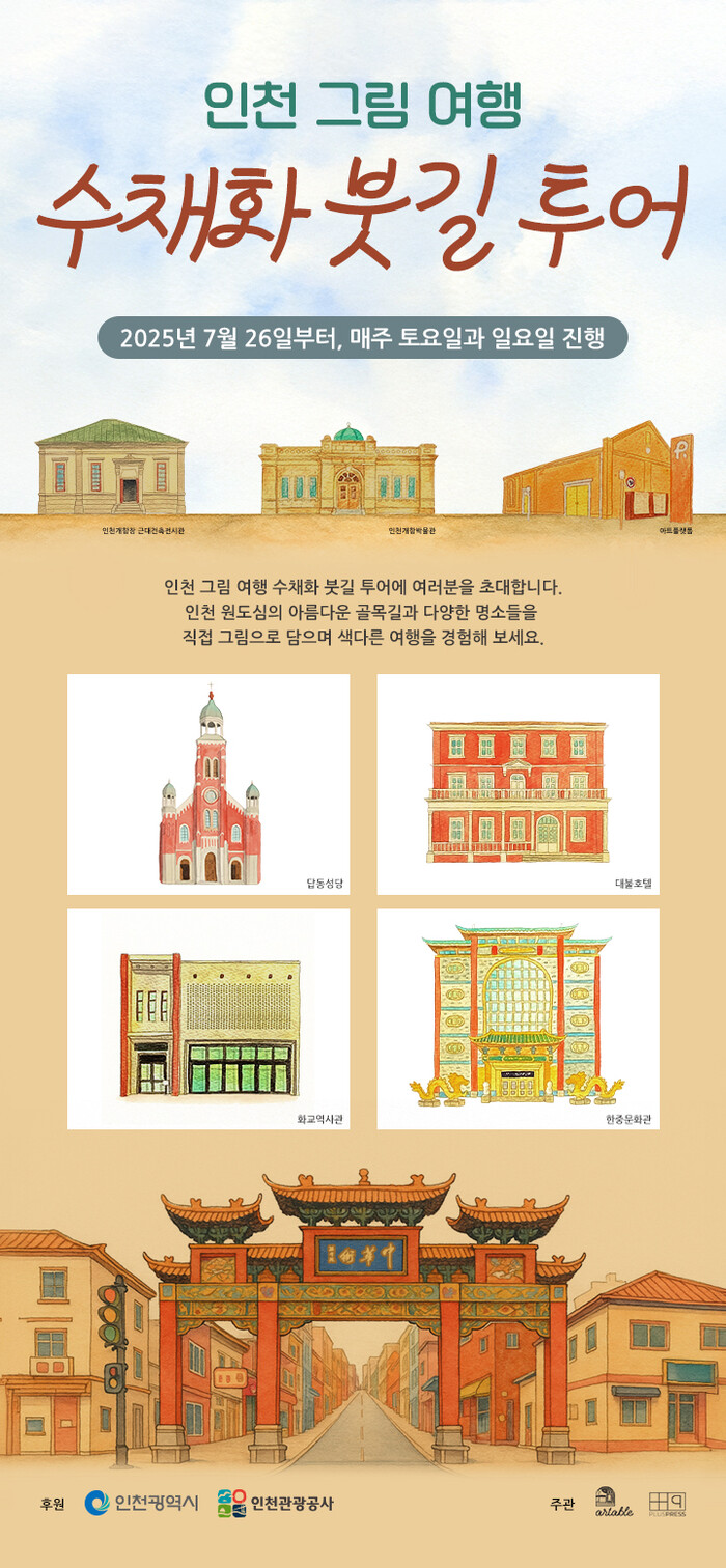 이번 수채화 붓길 투어는 참가비 없이 전면 무료로 운영되며, 모든 재료와 도구는 주최 측에서 제공한다. 집결지는 인천 중구에 위치한 누들플랫폼이며, 사전 신청만 하면 누구나 참여할 수 있다. 관광객은 물론 지역 주민, 가족 단위 참여자까지 모두에게 열려 있는 이 프로그램은 무더운 여름, 감성을 자극하는 특별한 도시 여행으로 주목받고 있다.