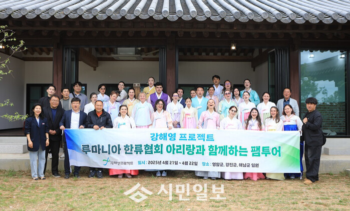 | ▲ 강해영(강진·해남·영암)문화관광재단, 루마니아 인플루언서 및 루마니아 한류 협회 아리랑 관계자 대상 팸투어 기념촬영 / 영암군 제공 |