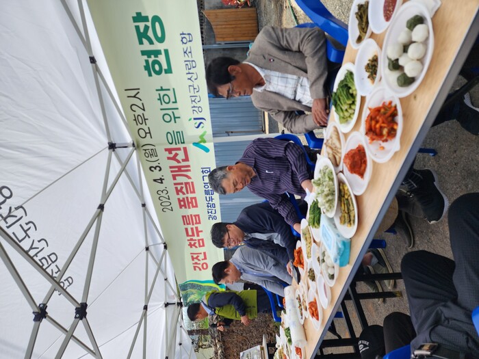 | ▲ 강진군, 지난 3일 관내 참두릅 연구회와 참두릅 품질개선 현장 간담회 개최 / 강진군 제공 |