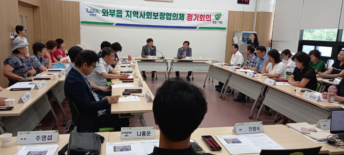 이날 회의에는 곽용환 와부읍장을 비롯해 협의체 위원, 남부희망케어센터 관계자, 복지공무원 등 30여 명이 참석해 경기도 간병 SOS 사업 홍보, 건강한 여름나기 꾸러미 지원, 협의체 특화사업 추진 등을 논의했다.