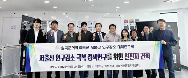 [칠곡=박병상 기자] 경북 칠곡군의회 의원연구단체인 “칠곡군 저출산 인구감소 대책연구회”는 지난달 9월 24일 도내에서 생활인구 증가율이 가장 높은 청도군을 방문하여 청년 및 귀농·귀촌 정책을 통한 인구 유입 방안에 대해 벤치마킹을 진행했다고 밝히면서 지난 10월 12일경 보도자료를 배포했다.