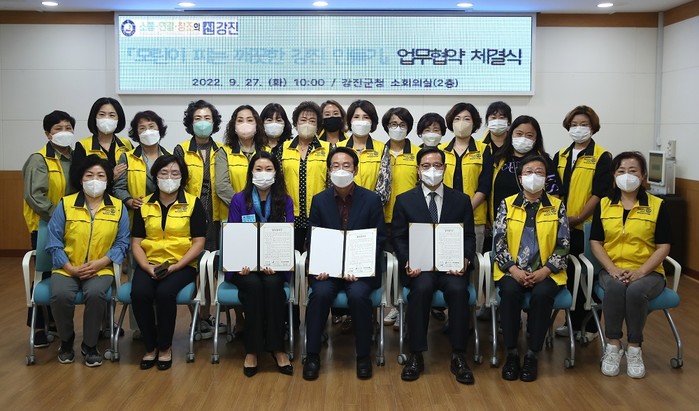 강진신문 오인환 대표이사, 강진모란로타리클럽 조진자 회장 등 20여 명이 참석한 가운데 진행된 이번 협약식은 ‘모란이 피는 깨끗한 강진 만들기’라는 이름으로 민·관이 협력해 자원 재활용의 중요성을 알리고 군민의 자발적인 참여를 호소하는 캠페인을 진행하기 위해 추진됐다.