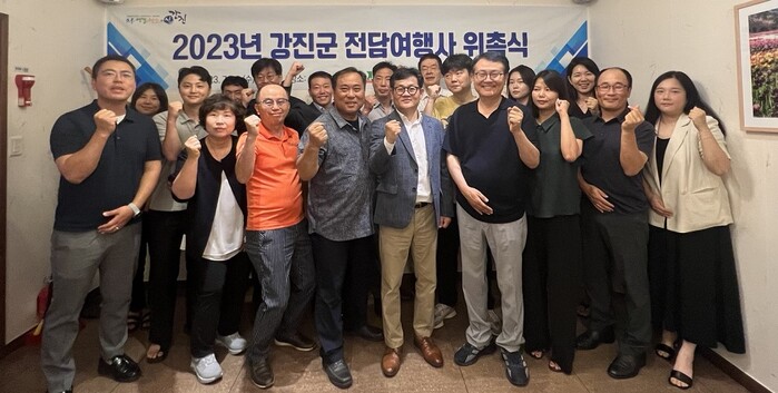 | ▲ 강진군문화관광재단, 지난 19일 ‘강진군문화관광재단 전담여행사’ 20개사 선정 및 위촉식 후 기념촬영 / 강진군 제공 |