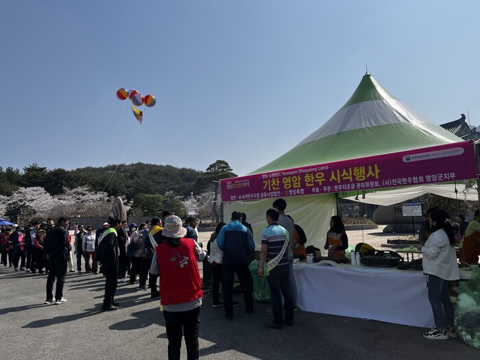 [영암=정찬남 기자] 전남 영암군(군수 우승희)은‘2023영암왕인문화축제’를 맞이해 지난 3월 30일부터 이달 2일까지 한우고기 시식회와 할인판매를 실시, 관광객들의 큰 호평 속에 행사를 마무리했다.