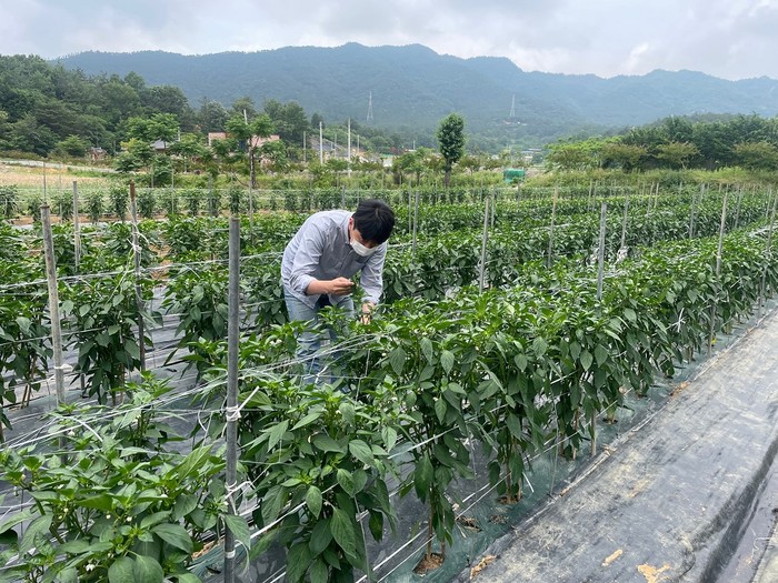 | ▲ 강진군 농업기술센터 담당자가 강진 관내 고추밭을 점검하고 있다. / 사진=강진군 제공 |