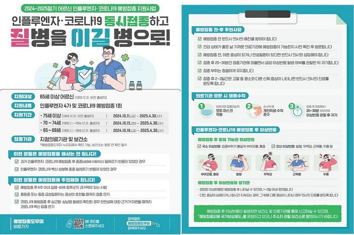 코로나19·인플루엔자 동시 접종 권장…연령별 시기 확인을