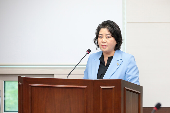 | ▲ 안산시의회 김진숙 의원이 지난 3일 의회 제2상임위원실에서 열린 제290회 제1차 정례회 기획행정위원회에서 자신이 발의한 ‘안산시 입영지원금 지급 조례안’에 대해 설명을 하고 있다 /사진제공=안산시의회 |