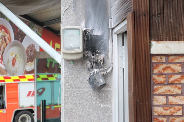 | ▲ 해남읍 소재 한 중국음식점의 단선 계량기에서 과열로 추정되는 화재가 발생돼 관계자가 주택용 소화기로 진화한 화재 현장 / 해남소방서 제공 |
