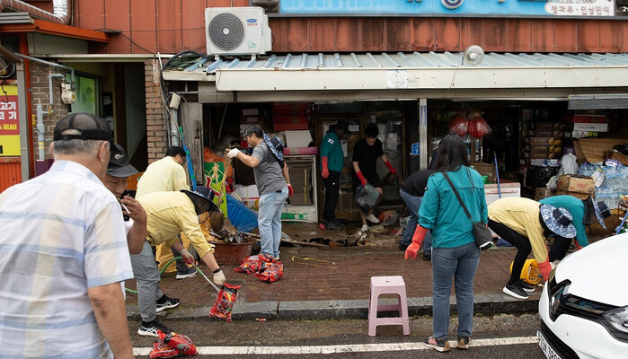 | ▲ 지난 9월 집중호우 피해 상가 복구 작업 / 자료사진 = 영암군 제공 |