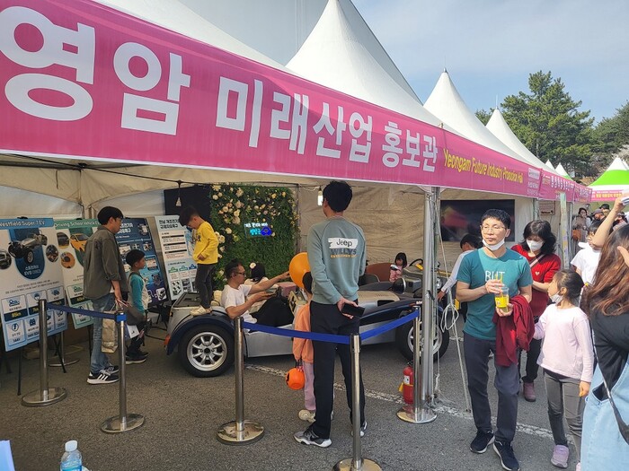 [영암=정찬남 기자] 전남 영암군(군수 우승희)에서는 2023 영암왕인문화축제 기간 중 ‘미래기술을 선도하는 개조 전기차 산업’을 주제로 각종 체험 프로그램과 포토존을 마련한‘개조 전기차 규제자유특구’부스가 관광객들의 큰 호응을 얻었다며, 앞으로도 신산업 육성을 통한 지역경제 활성화에 더욱 노력하겠다는 뜻을 밝혔다.