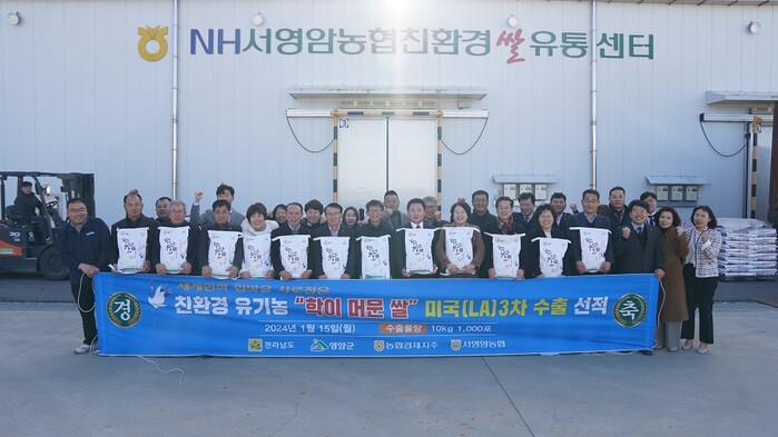 [영암=정찬남 기자] 전남 영암군(군수 우승희)이 지난 15일 서영암농협친환경쌀유통센터에서 친환경 유기농으로 생산한 ‘학이머문쌀’ 10톤을 미국 수출 3차 선적식을 가졌다.