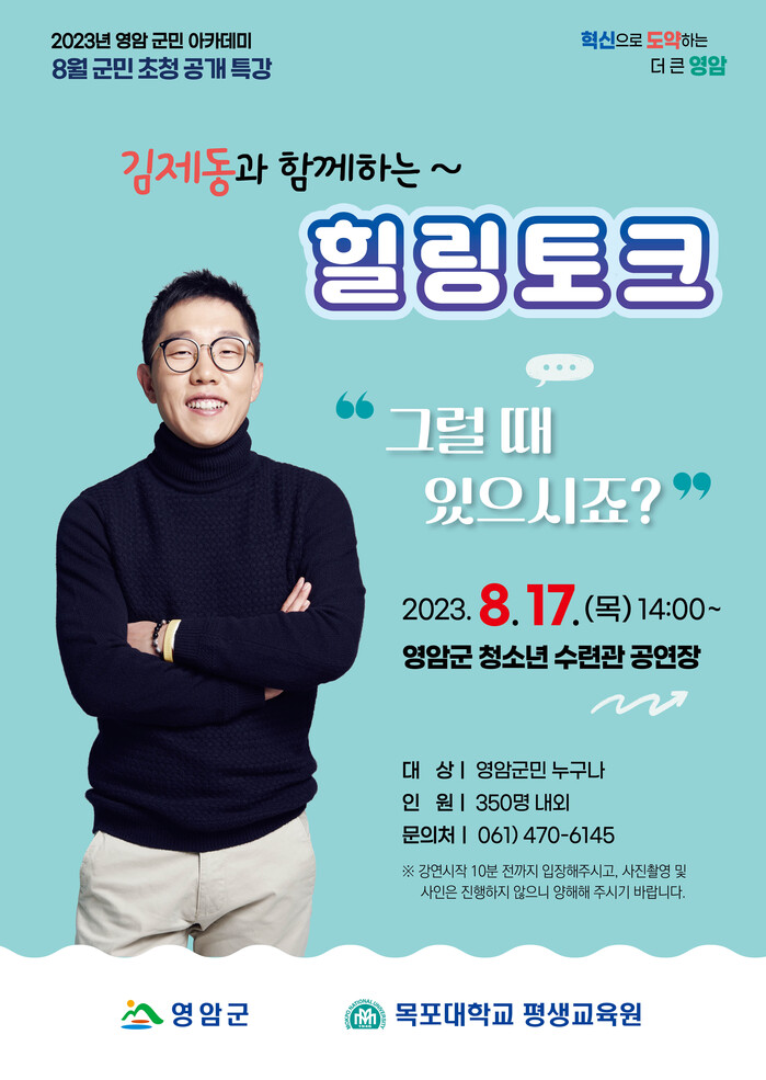 | ▲ 영암군, 김제동과 함께하는 힐링토크 포스터 / 영암군 제공 |