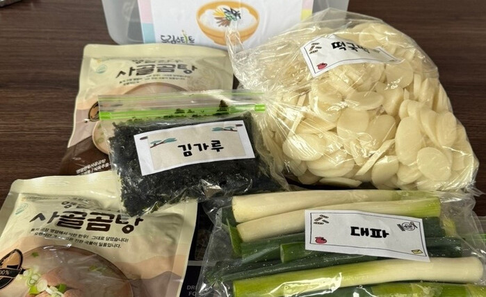 이 꾸러미에는 영암 달마지쌀과 한우를 재료로 만든 떡국떡과 사골곰탕, 대파, 김가루, 떡국 조리법 등이 들어 있었다.