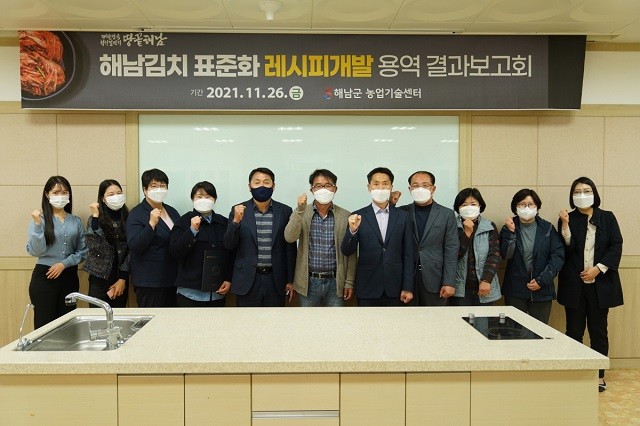 해남군은 지난 26일 농업기술센터에서 화원농협, 북평 동해리 김치정보화 마을 등 관내 8개 업체, 유관 부서장, 세계김치연구소가 참석한 가운데 김치표준화 기술 이전식을 가졌다.