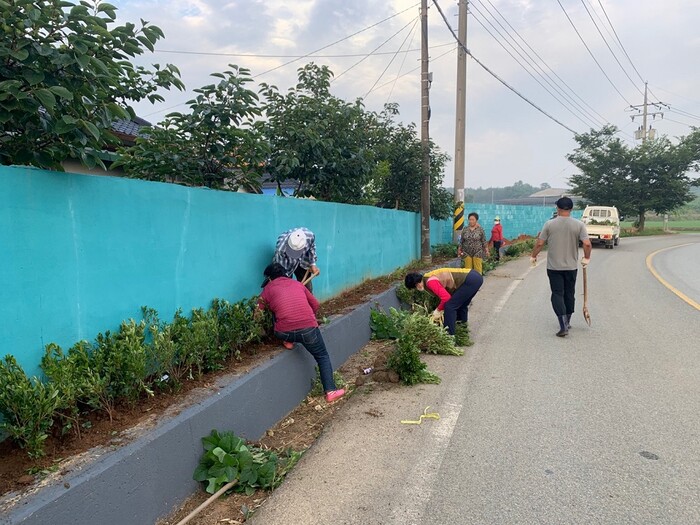 | ▲ 영암군 지역민들이 전라남도가 역점시책으로 추진하고 있는 '청정 전남 으뜸마을 만들기 사업'에 참여하며 마을 주요 도로변 화단을 조성하고 있다. / 영암군 제공 |