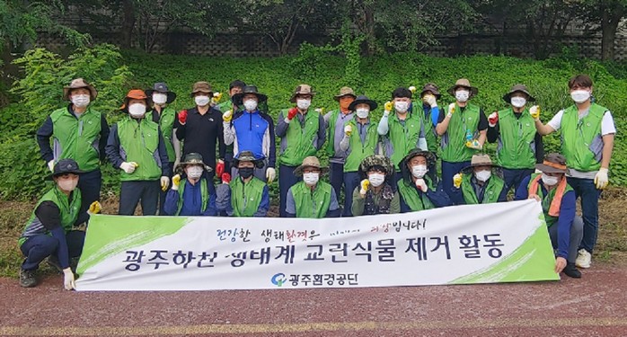 한편, 공단은 2015년부터 광주 제1하수처리장이 위치해 있는 치평동 일원의 하천을 중심으로 8년간 12회에 걸쳐 꾸준히 생태계 교란식물 제거 활동을 펼치고 있으며 지금까지 제거한 교란식물만 34톤에 달한다.