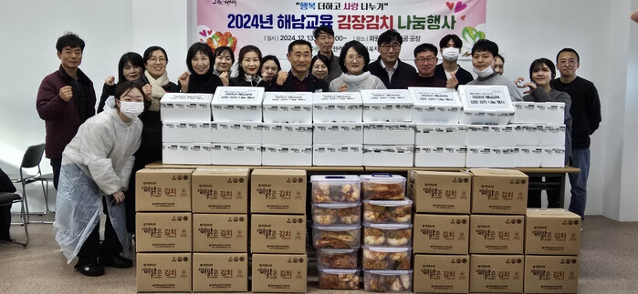 [해남=정찬남 기자] 전라남도해남육지원청(교육장 이자영)은 지난 13일(금) 직원들과 함께 나눔 실천을 위한 ‘2024학년도 사랑의 김장 김치 나눔 한마당’행사를 해남 화원농협 김치가공공장에서 실시했다.