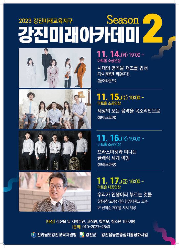 이번 공연은 강진군, 전라남도강진교육지원청, 강진읍농촌중심지활성화사업이 공동 주관해 시행한 강진미래 아카데미 시즌 1의 두 번째 버전이다.