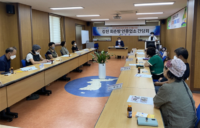 [강진=정찬남 기자] 전남 강진군은 지난 24일 강진군도서관에서 회춘탕의 옛날 명성을 되찾아 보자는 각오로 회춘당 인증업소 10개소 영업주를 대상으로 간담회를 가졌다고 밝혔다.