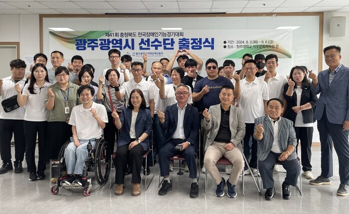 광주광역시(시장 강기정)는 지난 3일부터 오는 6일까지 충북 청주시에서 열리는 ‘제41회 전국장애인기능경기대회’에 광주시 대표로 26개 직종 31명의 선수가 참가, 지난 3일 ‘광주시 선수단 출정식’을 가졌다.
