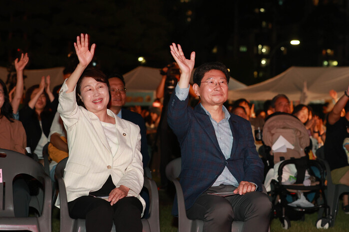 [용인=오왕석 기자] 이상일 용인특례시장은 13일 저녁 수지구 동천동 목양교회 잔디광장에서 열린 ‘머내마을 영화제 야외축제’에 참석해 세 시간 가량 시민들 함께 영화를 감상하고 소통하는 시간을 가졌다.