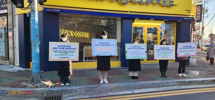 | ▲ 해남읍 일원에서 작은 학교 살리기 캠페인을 펼치고 있는 현산초등학교 관계자들 / 사진=해남교육지원청 제공 |