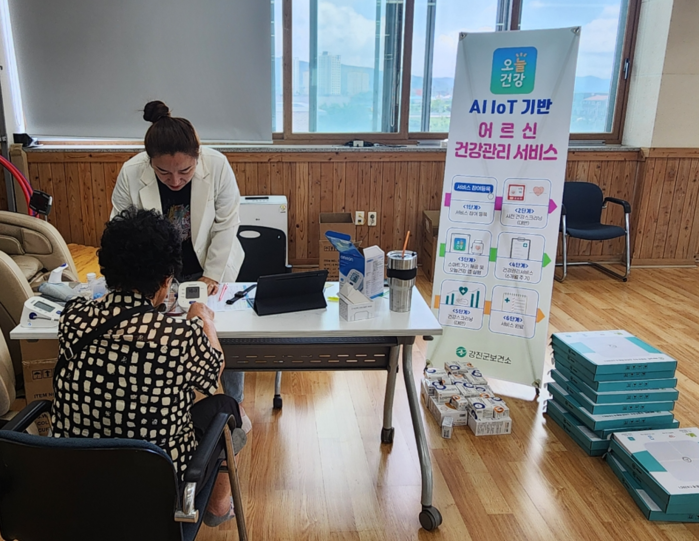 | ▲ AI(인공지능)ㆍIoT(사물인터넷) 기반 어르신 건강관리서비스. (사진=강진군청 제공) |