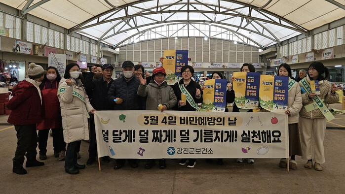 [강진=정찬남 기자] 전남 강진군이 지난 4일 ‘비만예방의 날’을 맞아 강진읍시장 일원에서 군민 및 시장상인 등을 대상으로 비만 예방 및 건강생활 실천을 독려하는 캠페인을 실시했다.
