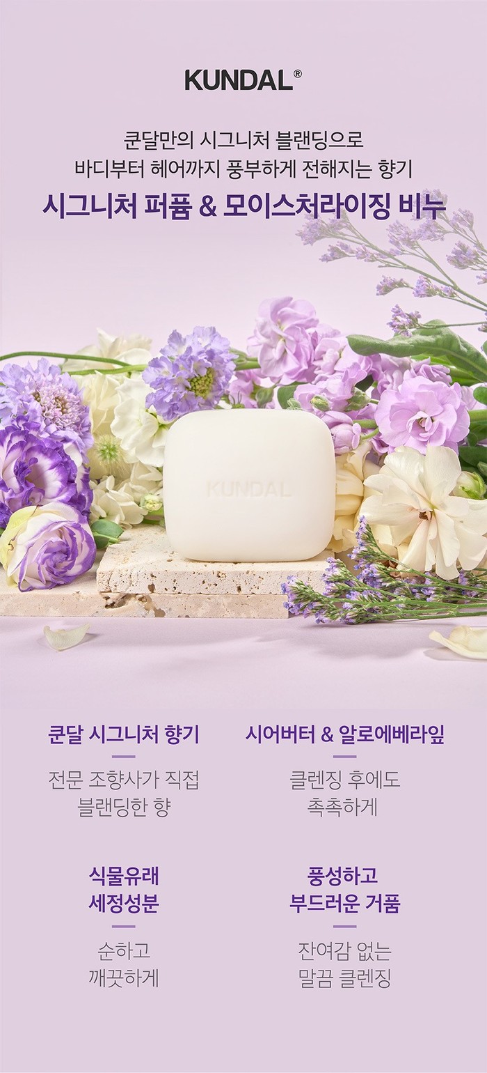 쿤달 제품마케팅팀 담당자는 "쿤달 시그니처 퍼퓸 앤 모이스처라이징 비누는 매일 사용하는 제품인 만큼 기본 원료부터 꼼꼼하고 세심하게 엄선해 만들었다”며, "욕실 가득 풍성하게 퍼지는 쿤달의 시그니처 향기와 세정 후에도 당김 없는 촉촉한 사용감을 느낄 수 있다"고 전했다.