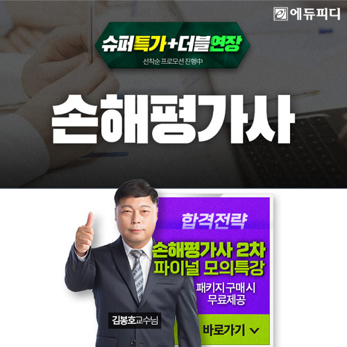 에듀피디의 손해평가사 취득 시험 대비 ‘합격패키지’는 전 과목 ‘이론+문풀+기출해설’ 등 연계형 학습이 가능한 커리큘럼으로 구성되며, 본 패키지를 구매한 수강생에 한해 약 90% 할인을 적용해 주는 ‘슈퍼특가’ 혜택과 결제 시 수강 기간이 자동으로 2배 연장되는 ‘더블연장’ 혜택을 함께 제공하는 프로모션을 선보인다.