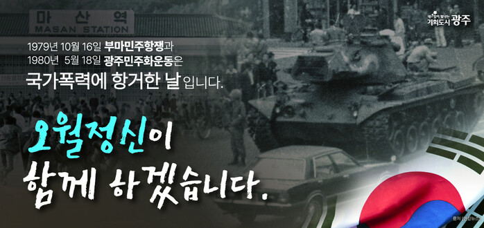 [광주=정찬남 기자] 광주광역시(시장 강기정)는 16일 제45주년 부마민주항쟁 기념일을 맞아 “광주는 부산, 마산과 함께 민주역사도시로서 연대를 강화하고 대한민국 민주주의 역사가 인류 공동의 자산이 되도록 함께 노력하겠다”고 밝혔다.