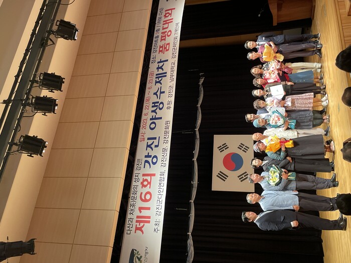| ▲ 강진군다인연합회, 강진신문, 강진문화원 주관 제 16회 강진 야생수제차 품평대회 상 수상자 기념촬영 / 강진군 제공 |