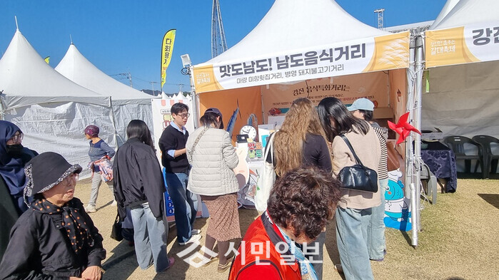 [강진=정찬남 기자] 제10회 강진만 춤추는 갈대축제와 연계된 남도음식거리 홍보부스가 지난달 31일부터 11월 1일까지 2일간 축제장에서 성공적으로 운영돼 관광객들의 뜨거운 관심을 받았다.