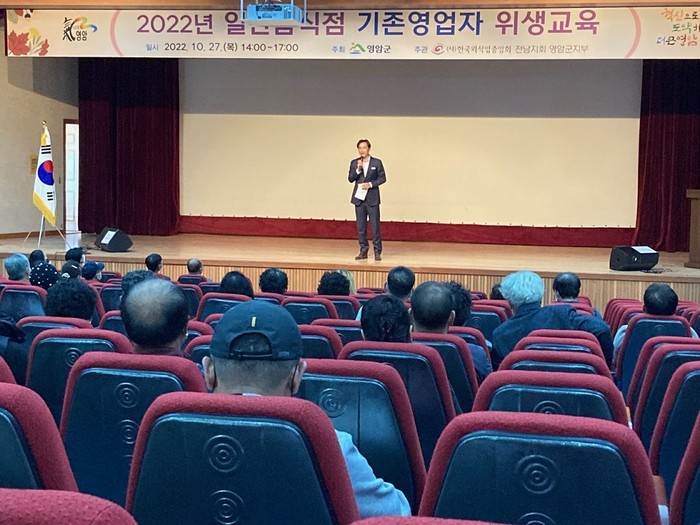 이와 관련해 (사)한국외식업중앙회 영암군지부(지부장 김선보)는 영암군 관내 일반음식점 영업주 300여 명을 대상으로 식품안전사고 예방과 위생수준 향상을 위한‘ 2022년도 식품위생교육’을 지난 27일 영암군청소년 수련관에서 실시했다.