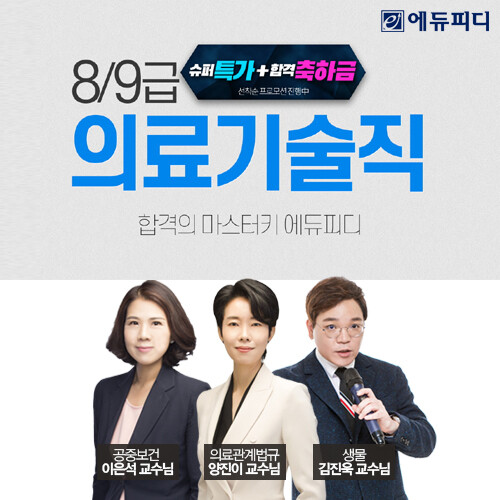 강의는 에듀피디 공무원 생물 김진욱, 공중보건 이은석, 의료관계법규 양진이 교수 등 과목별 전문 교수진이 맡아 과목별 핵심 이론과 출제 포인트, 빈출 문제 유형의 공략법을 제시해 줘 체계적인 고득점 달성을 돕는다.