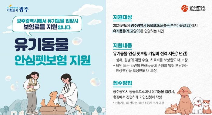 | ▲ 2024년 유기동물 안심펫보험 지원 홍보 이미지 / 광주광역시 제공 |