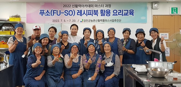 [강진=정찬남 기자] 전남 강진군 농촌신활력플러스사업추진단은 지난 5일부터 20일까지 강진푸소협동조합 조합원 74명을 대상으로 신활력아카데미 마스터과정 ‘푸소 레시피북을 활용한 요리실습 교육’을 진행했다.