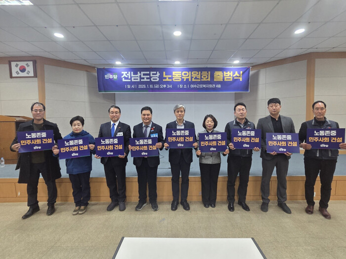 전남도당 노동위원회는 출범식 결의문을 통해 ▲이재명 국민주권정부와 함께 노동존중 민주사회 건설을 위한 정책 실천 ▲산업 대전환 및 침체에 따른 고용위기 최소화와 노동조건 후퇴 방지 ▲소외된 노동과 특수직 노동권익 보호를 위한 연대를 3대 핵심 과제로 제시했다.