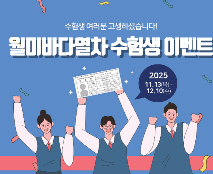 공사에 따르면 이번 이벤트는 2026학년도 수능 수험생 본인과 동반 2인까지 적용되며 수험표를 현장 직원에게 제시하면 월미바다열차 탑승권을 평일 기준 50% 할인된 가격으로 이용할 수 있다.