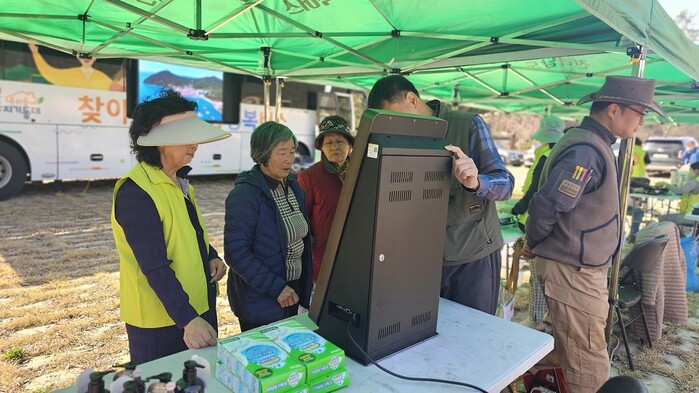| ▲ 영암군, 지난 1일 금정면 신유토마을 주민 대상 행복버스 키오스크사용법 설명 / 영암군 제공 |