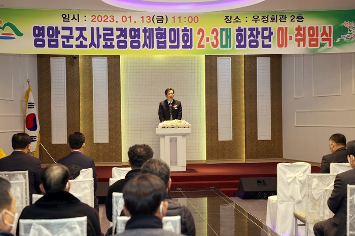 우승희 영암군수는 “전용선 회장님과 정운태 이임회장님을 비롯한 임원 여러분께 축하와 감사의 말씀을 드린다”며, “앞으로도 조사료 자급률 향상과 고품질 조사료 생산을 통한 축산업 발전에 이바지해주시기 바란다.”고 당부했다.