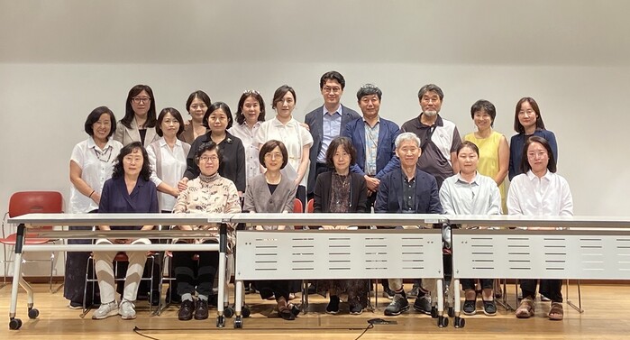 | ▲ 오슬기 한국민화뮤지엄 관장이 지난 9일 한국민화뮤지엄 본관에서 ‘운정 조광준의 금강산도 연구’ 를 위한 2023 한국민화학회 추계학술대회 개최 후 한국민화학회 관계자들과 기념촬영을 하고 있다. / 강진군 제공 |