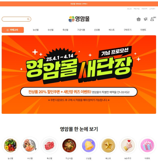 영암몰은 이번 새 단장을 기념해 오는 4월1~14일까지 2주간 전품목 20% 할인 판매를 실시한다.