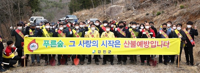 [강진=정찬남 기자] 전남 강진군이 지난 21일 대구면 용운리 산 일원에서 제77회 식목일을 기념하고 지속적인 산림자원 육성을 위한 나무심기 행사 및 산불예방 캠페인을 개최했다.