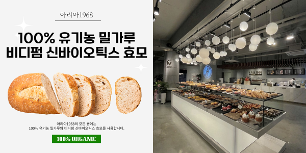 아리아1968의 모든 빵엔 100% 유기농 밀가루와 비디펌 신바이오틱스 효모가 첨가되며 웰빙 열풍에 힘입어 선물용으로도 판매중이다.