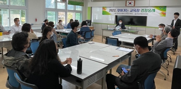 조영천 해남교육지원청교육장은 지난 4월 21일 북일초등학교와 두륜중학교를 찾아 학부모와 지역민, 교직원이 함께한 가운데 ‘2022.찾아가는 경청올레’를 진행했다.