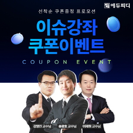 업체 관계자에 따르면 ‘쿠폰이벤트’ 참여방법은 에듀피디 사이트 로그인 후 ‘이슈단과 쿠폰이벤트’ 페이지에 명시된 절차에 따라 해당 강좌를 구매할 수 있는 ‘0원 수강 쿠폰’을 다운로드하여 수강 신청할 수 있으며, 강의는 PC와 모바일을 통해 배수 제한 없이 15일 동안 수강할 수 있다.