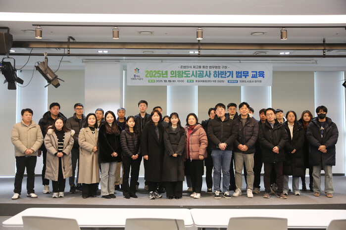 [의왕=송윤근 기자] 경기 의왕도시공사(사장 노성화)는 12월 15일 포일어울림센터 대강당에서 공사 직원들의 준법정신 향상 및 법률 역량 증진을 위한 ‘2025년 하반기 법무교육’을 실시했다.