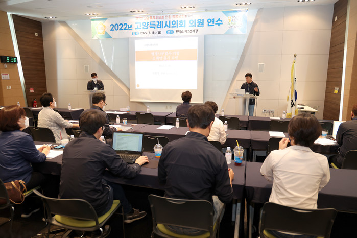 [고양=이기홍 기자] 고양시의회는 7월 18일 1일 일정으로 킨텍스 제2전시장에서 고양시의회 의원 34명 및 의회사무국 직원 등 총 60여명이 참석한 가운데 ‘제9대 고양시의회 의원 전체연수’를 실시하였다.